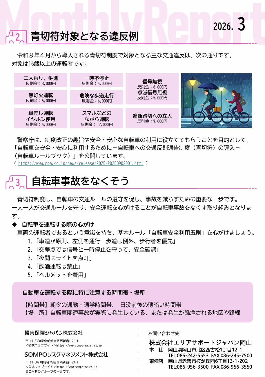 4月からの青切符制度をきっかけに、ご家庭でも交通ルールや安全運転について見直してみてはいかがでしょうか。
